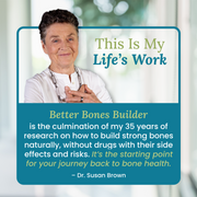 Better Bones Builder, the landmark supplement for intensive osteo support, formulated by natural bone health expert, Dr. Susan E. Brown, PhD.