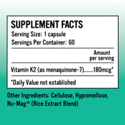 1 Bottle of K2 (MK-7) (180 mcg) - 60 Capsules (one small caplet per day).